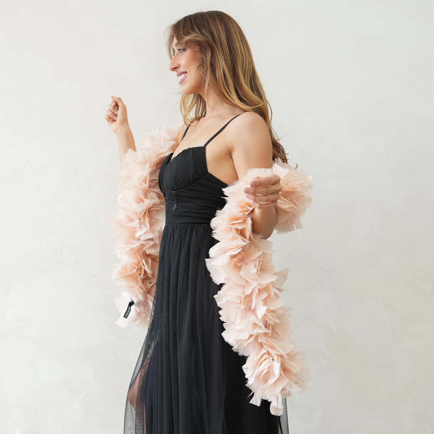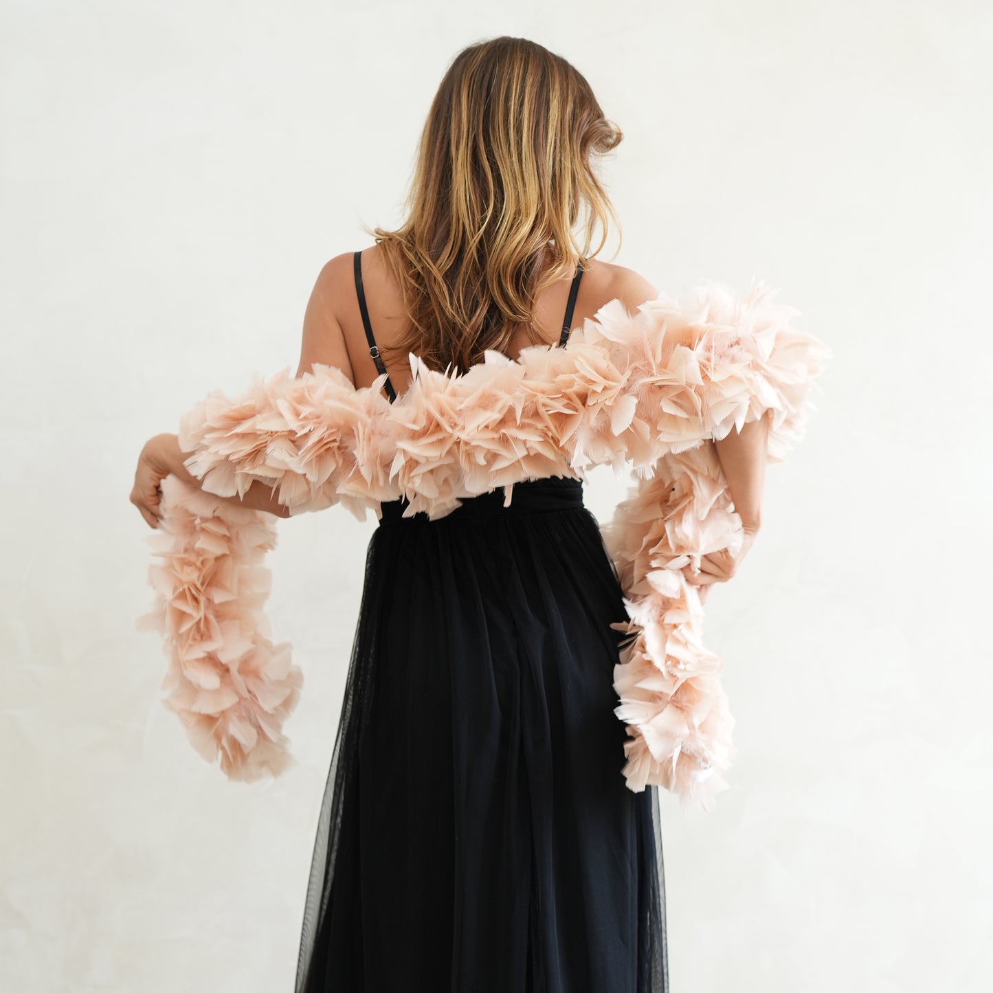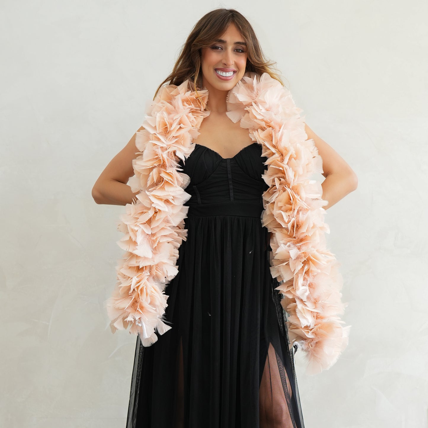Our luxurious feather boa is made from quality turkey feathers with wide tips. This pink feather boa measures 2 yards (6 ft) long and approx 6-8" in diameter. This particular boas is our smallest and least expensive turkey boa. This Zucker feather boa can be cut with wire cutters without unraveling as feathers are sewn onto a nylon cord and cotton-covered wire, which helps it keep its shape and not come untwisted.