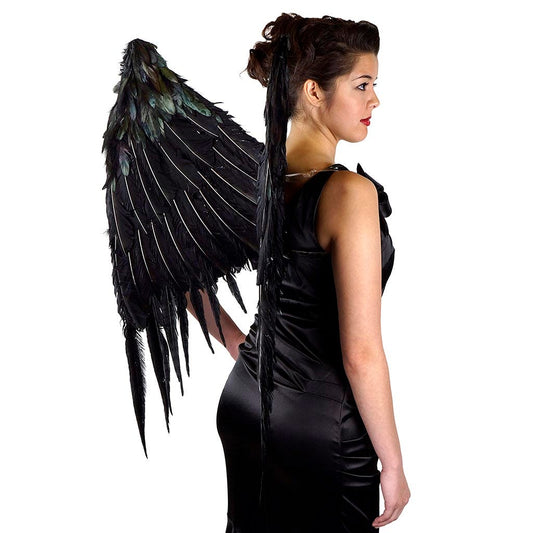 Gothic Crow Costume Feather Wings - Black Over the Shoulder Feather Fairy Wings for Unique Cosplay and Halloween Costume Accessories.